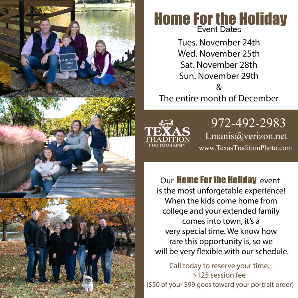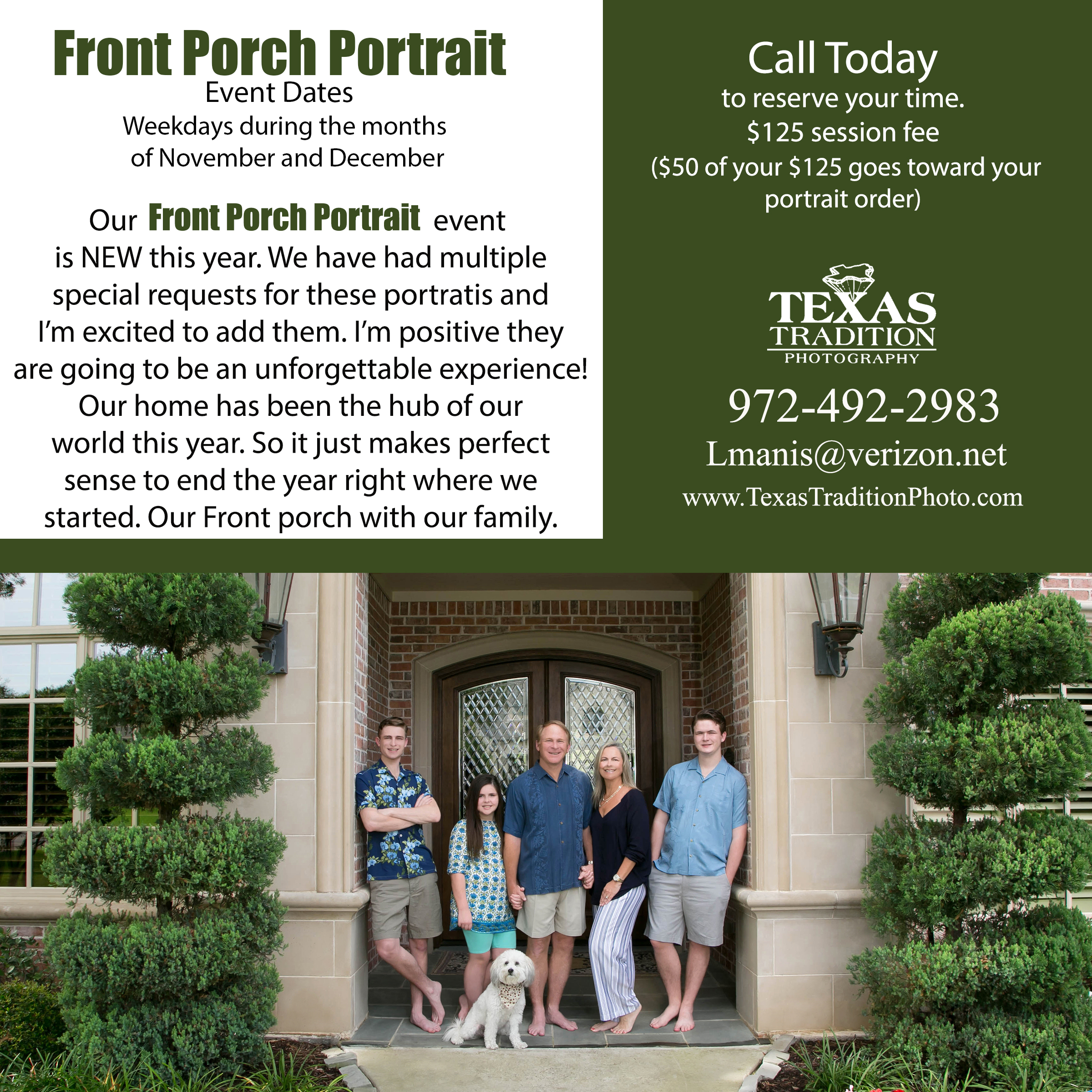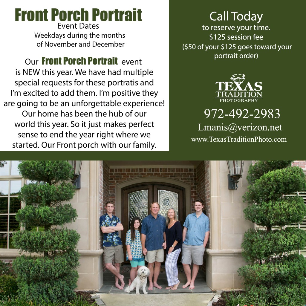 A great family portrait begins with a great family portrait session. And the way to achieve that, is to start planning RIGHT NOW! So, before you go any further, give us a call and get on our calendar for either our Portrait in the Park Event or our Home for the Holiday Event or now our NEW Porch Portrait Even. Details for all three of these events are below.